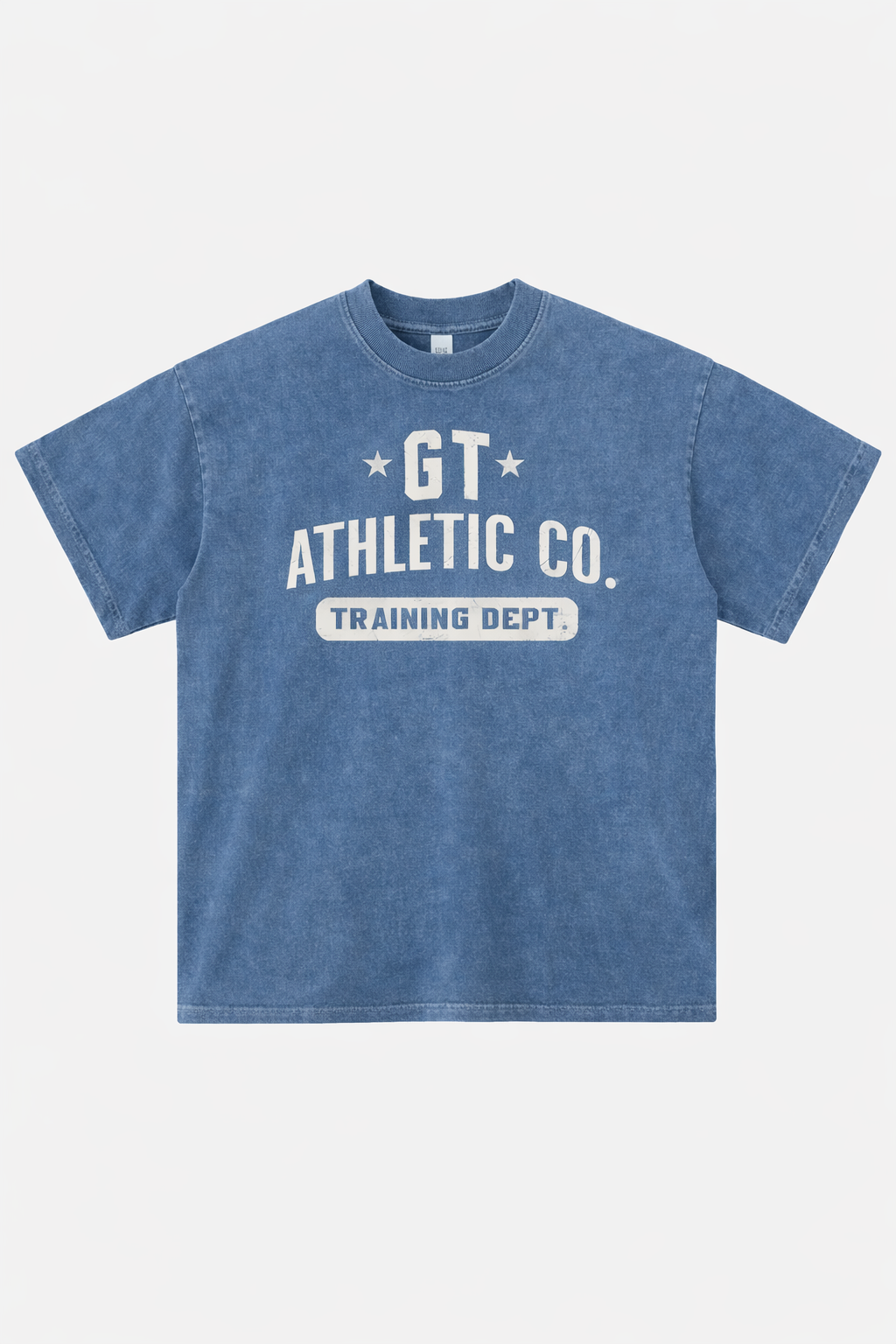 A lived-in, garment-dyed tee with that perfect washed finish. Featuring our retro GT Athletic Co. arch print, this tee delivers a broken-in feel with a boxy, relaxed fit. Built for long training sessions, post-gym hangs, and everything in between.